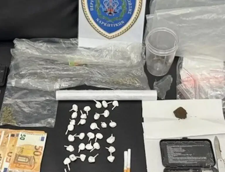 - Στις έρευνες βρέθηκαν δεκάδες έτοιμες δόσεις κοκαΐνης, κατεργασμένη κάνναβη και εξοπλισμός για τη συσκευασία των ναρκωτικών.