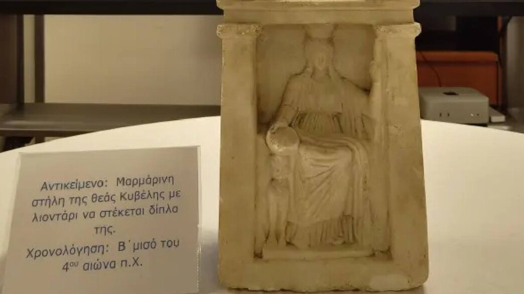 Το εύρημα που εντοπίστηκε ήταν εξαιρετικής σημασίας και βρισκόταν κρυμμένο στο πατάρι του σπιτιού. Συγκεκριμένα, κατασχέθηκε μια μαρμάρινη ναόσχημη αναθηματική στήλη, η οποία απεικονίζει την ένθρονη θεά Κυβέλη με ένα λιοντάρι στο πλευρό της. Σύμφωνα με τις πρώτες εκτιμήσεις, το αντικείμενο χρονολογείται στον 4ο αιώνα π.Χ., αποτελώντας ένα σημαντικό τεκμήριο της πολιτιστικής μας κληρονομιάς.