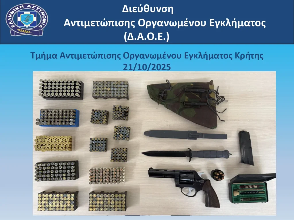 Σε οργανωμένη επιχείρηση του Τμήματος Αντιμετώπισης Οργανωμένου Εγκλήματος Κρήτης, το πρωί της Τρίτης 21 Οκτωβρίου 2025, συνελήφθη 57χρονος άνδρας σε περιοχή του Ηρακλείου, κατηγορούμενος για παραβάσεις της νομοθεσίας περί όπλων και ηλεκτρονικών επικοινωνιών.