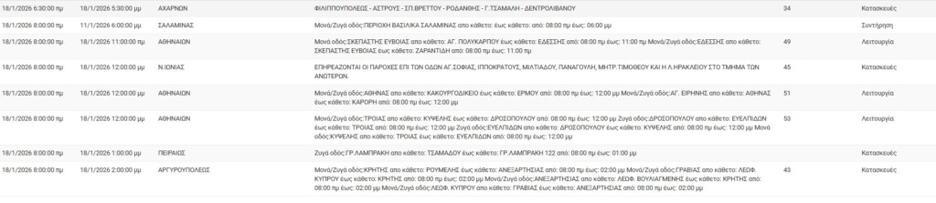 Διακοπές ρεύματος έχει προγραμματίσει για σήμερα, Κυριακή 18 Ιανουαρίου 2026, ο ΔΕΔΔΗΕ σε διάφορες περιοχές της Αττικής.