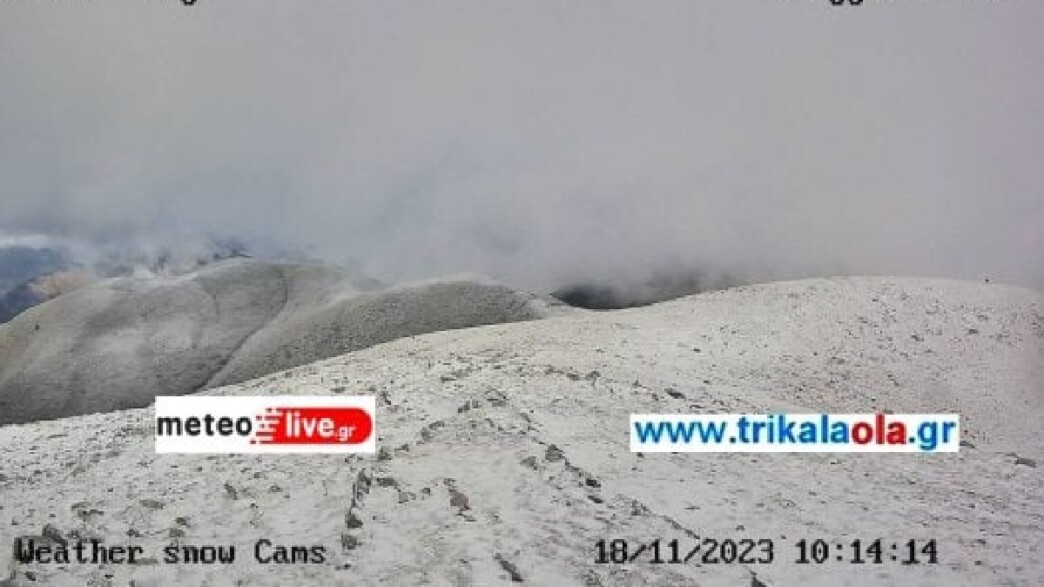Στα λευκά «ντύθηκε» και η κορυφή Τριγγία (2.204 μέτρα) της νότιας Πίνδου του δήμου Μετεώρων στα Τρίκαλα. Η live κάμερα του meteolive.gr κατέγραψε το πρώτο χιόνι της χειμερινής περιόδου.