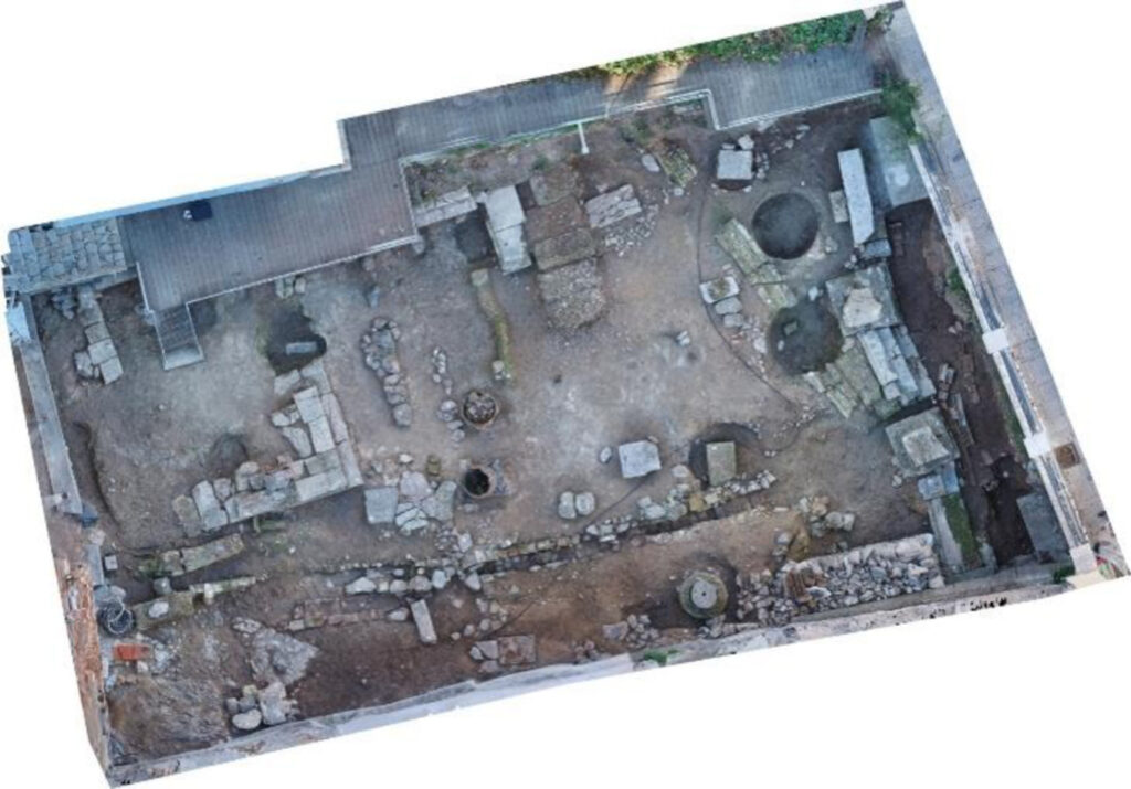 Κατά τη διάρκεια των ανασκαφικών εργασιών που πραγματοποιήθηκαν στον αύλειο χώρο και το ισόγειο της διατηρητέας οικίας, ήρθαν στο φως αρχαιολογικά κατάλοιπα που καλύπτουν ένα ευρύ χρονολογικό φάσμα, από την κλασική έως και τη βυζαντινή εποχή.